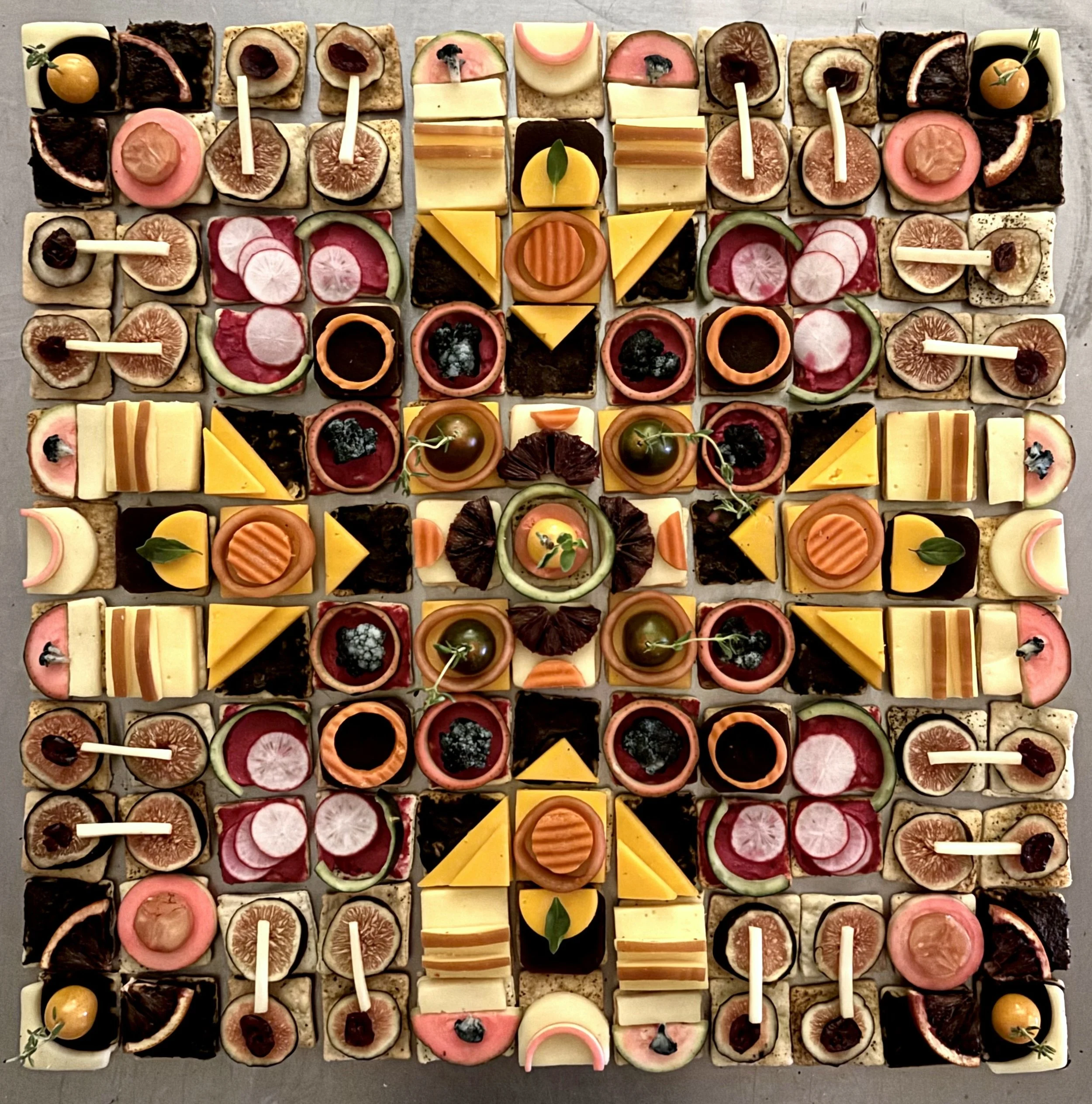 Join 2026 Teaching Fellow Sarah K. Williams for this exciting workshop that explores the art of complex patterning in cheese plate construction. Using carefully cut cheeses and seasonal produce, participants will create repeated, radiating and symmetrical designs through the thoughtful arrangement of edible shapes. Drawing inspiration from a range of genres, including quiltmaking, abstract painting, minimalism, and sci-fi architecture, we consider the visual rhythm of flavor. Alongside art and design, we will also learn about local cheeses, herbs, and vegetables while engaging in the meditative practice of building edible artworks.